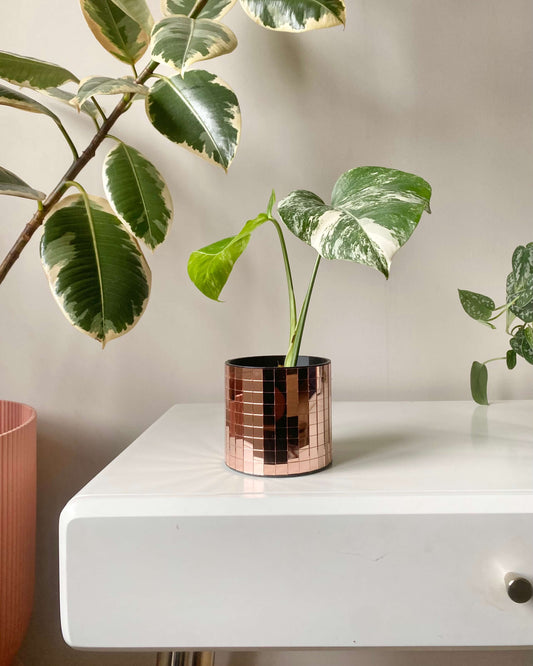 Cache-pot disco à facettes – modèle rond doré & cuivré